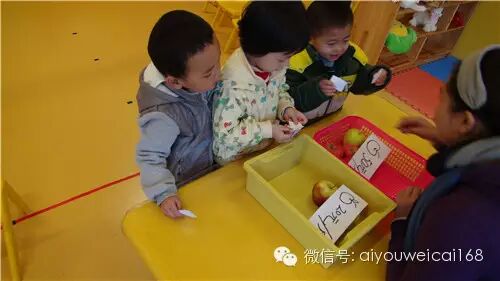 课上宝贝们自己当顾客买水果后又自己当老板卖水果,玩的可高兴了: