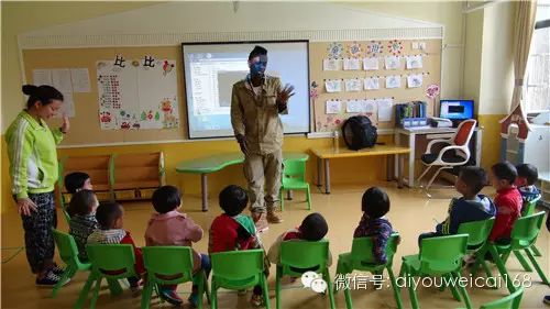 今天是2014年10月8日,国庆收假新的课堂又开始了,昆明爱佑伟才幼儿园的小朋友今天特别高兴。因为来自南非加纳的外教Max来到幼儿园给大家上课,孩子们热情的与外教打招呼,一点儿也不陌生,好像Max是我们的老朋友。止不住的兴奋,说明Max很受小朋友们的欢迎。他们在一起高高兴兴的做自我介绍。我们一起与孩子们分享快乐吧!