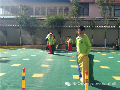 今天上午大班的宝贝们在老师的带领下练习行进跳跃(袋鼠跳),这项体育活动可以发展幼儿动作的协调能力,提高反应能力和控制能力以及发展幼儿初步的合作能力,感受与同伴合作游戏的快乐。