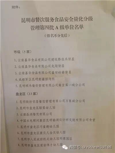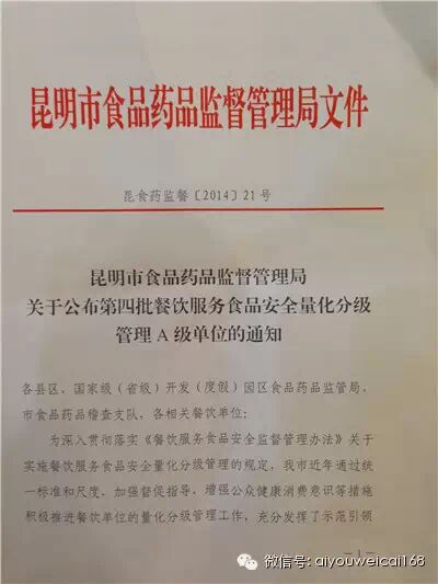 【喜讯】昆明爱佑伟才(国际)幼儿园荣获首批餐饮服务食品安全A级单位